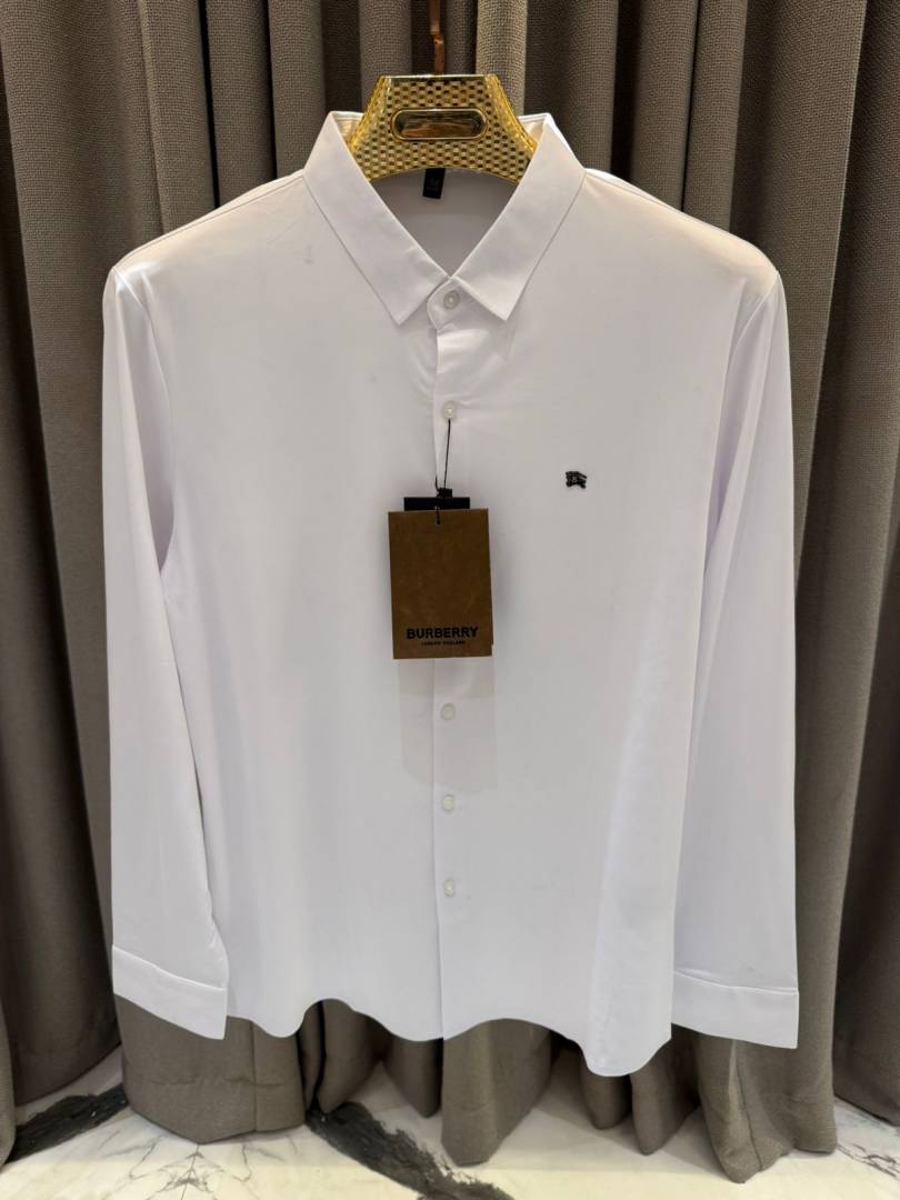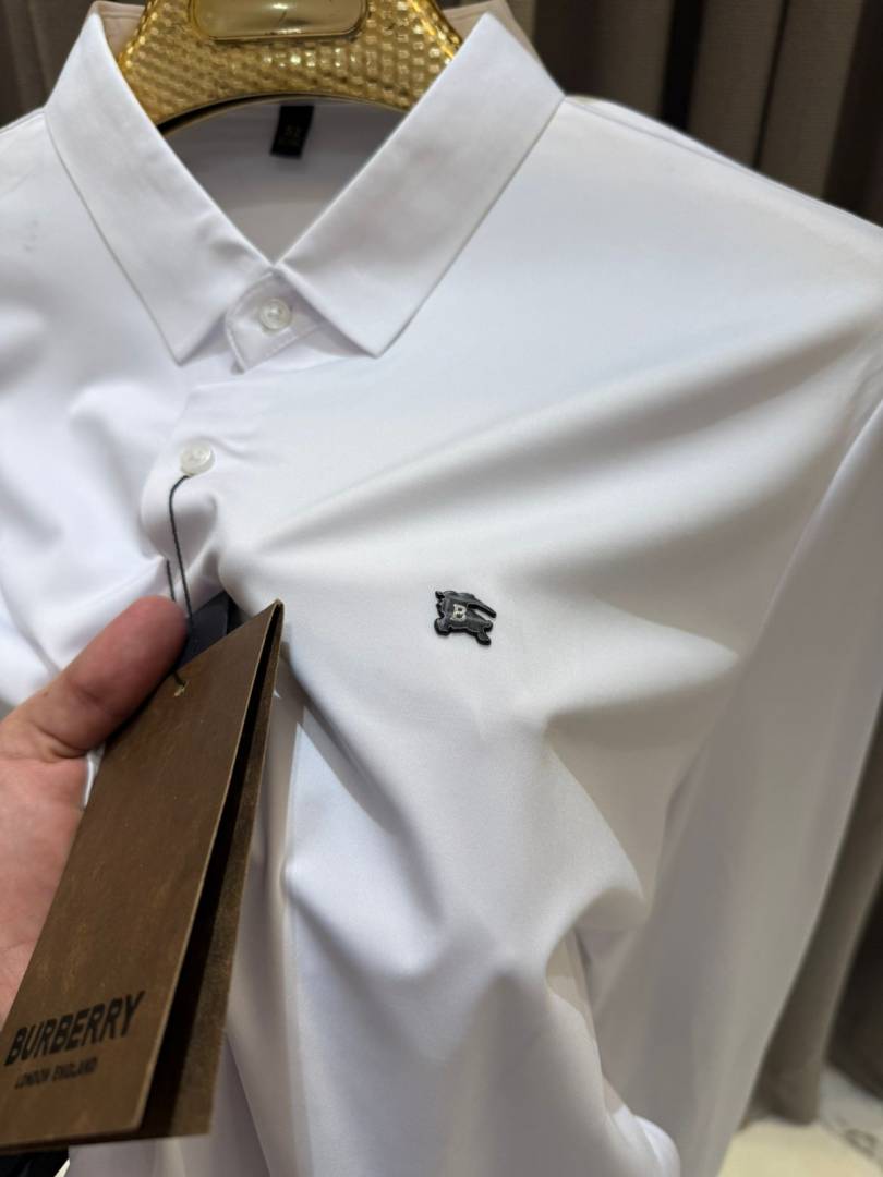 Burberr_y Chest Metal Logo Japanese Lycra Full Sleeves Shirt White