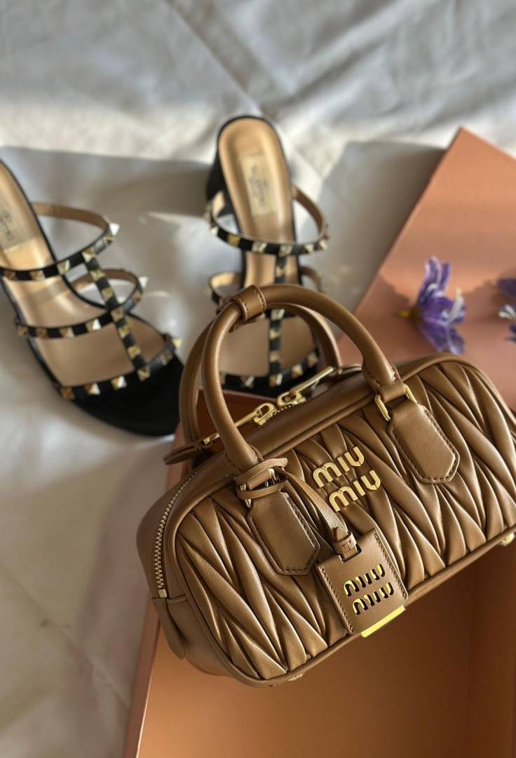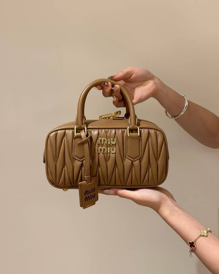 Miu Miu Arcadie Brown Tan Medium Shoulder Bag With Original Box DustCover Lock Key & Tags