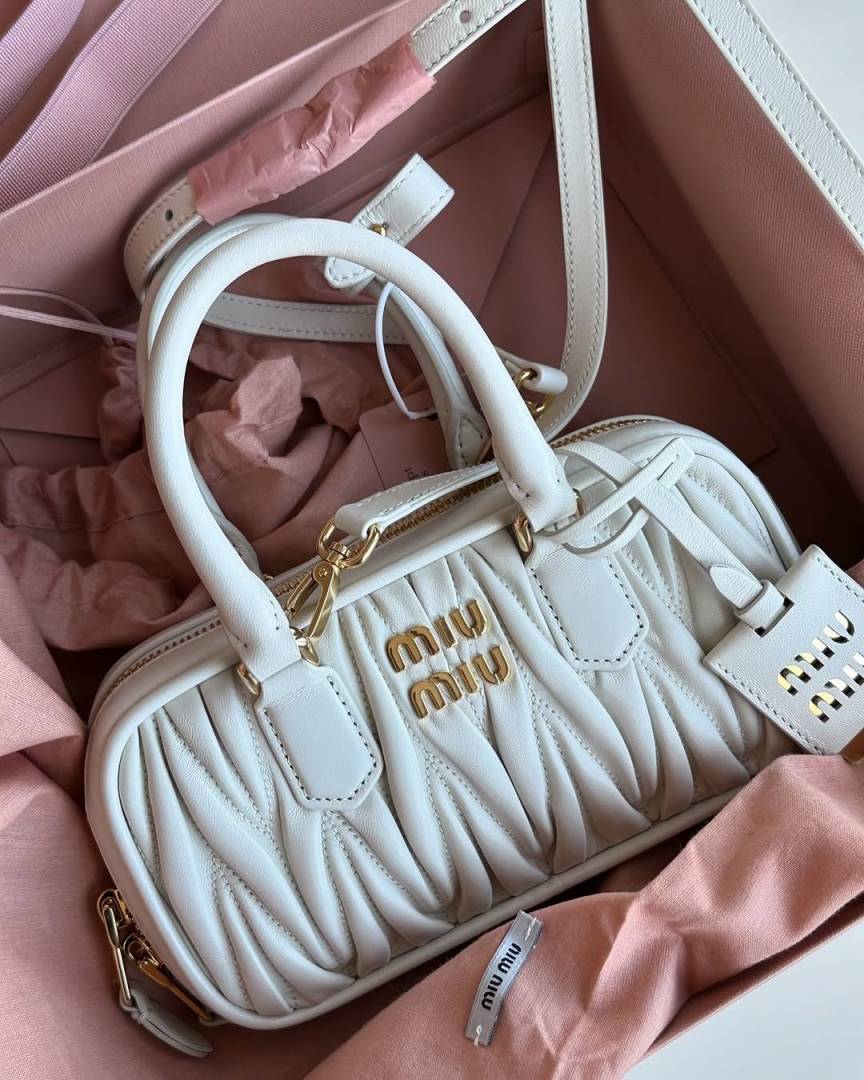 Miu Miu Arcadie White Medium Shoulder Bag With Original Box DustCover Lock Key & Tags