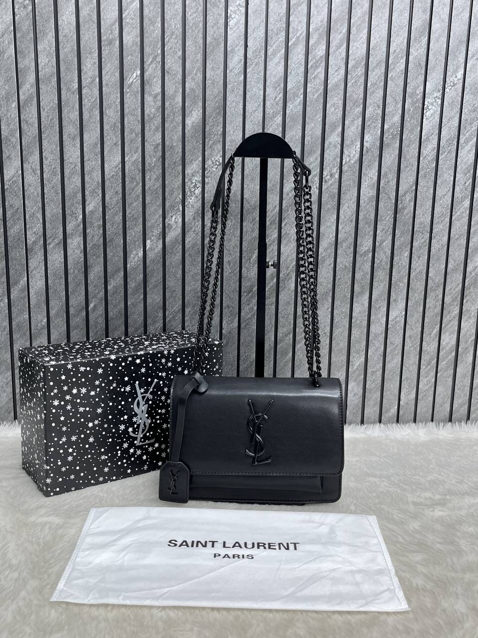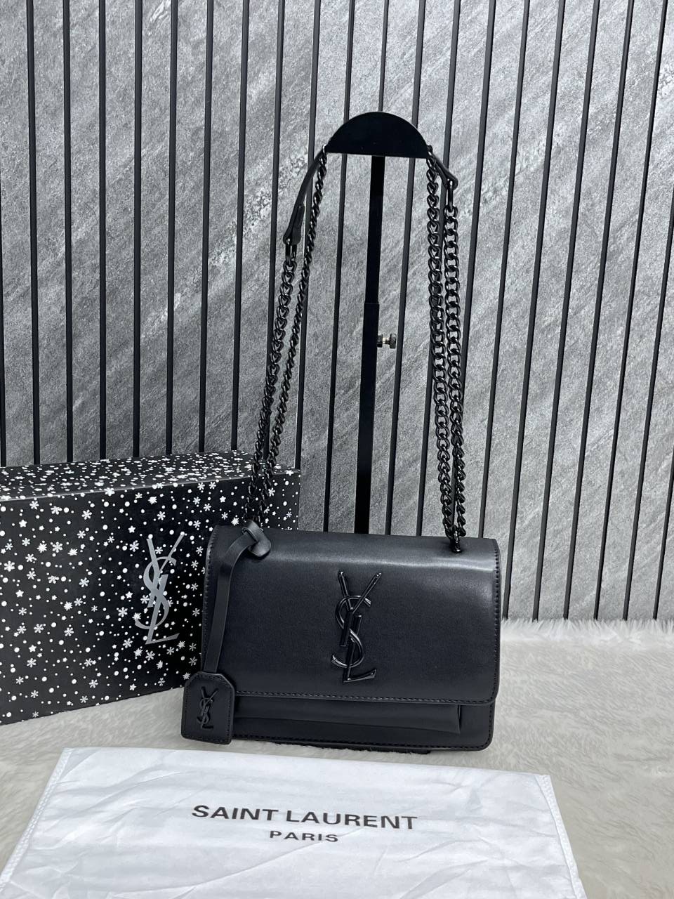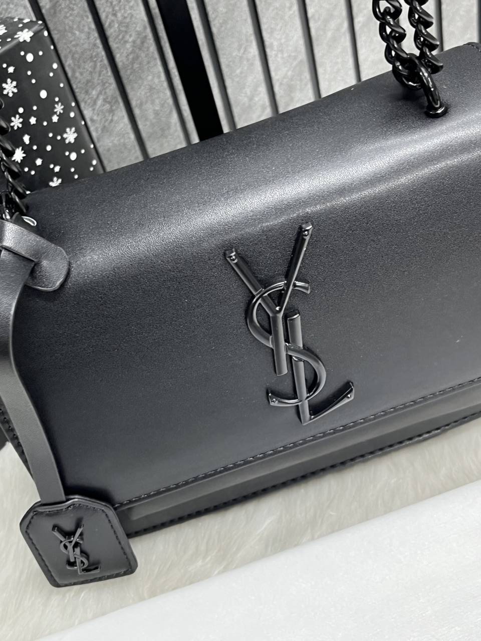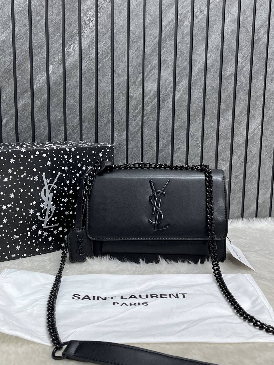 Ysl Sunset All Black Matte Shoulder Bag With Original Box & Dust Cover